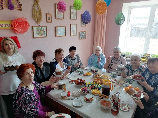 В отделении «Специализированный жилой дом для граждан пожилого возраста и инвалидов» прошло праздничное мероприятие «Куличами угощаем и здоровья вам желаем!». Участники мероприятия собрались за праздничным пасхальным столом. Сотрудники отделения вспомнили важные моменты и даты, связанные с воскресением Христовым.
