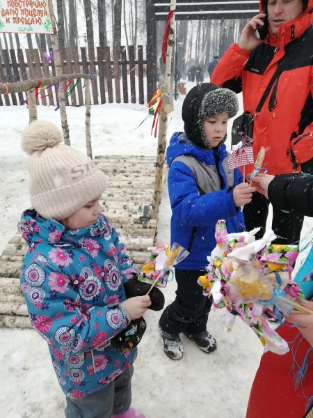 Акция "Поделись улыбкой", посвященная празднованию Масленицы, была проведена 26 февраля на площади возле РЦДиК. Работники Комплексного центра дарили детям и прохожим куклы-масленки, а также сладкие леденцы-петушки, сделанные своими руками.