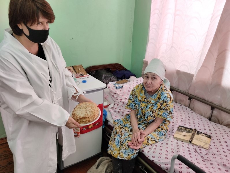 Сотрудники отделения Спецжилдома угостили вкусными блинами также и маломобильных жильцов отделения.