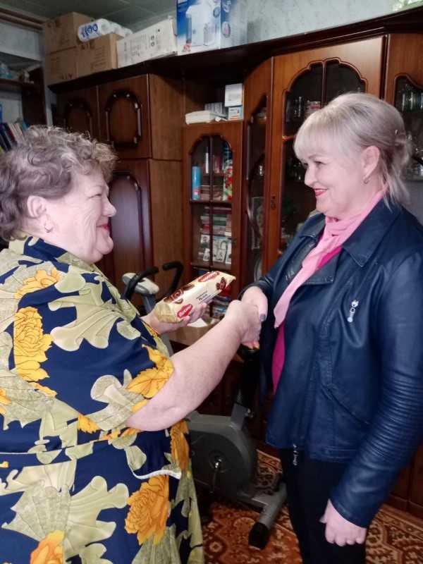 Социальные работники отделения социально-бытового обслуживания на дому №7 поздравили обслуживаемых с Декадой пожилых людей, пожелали крепкого здоровья, благополучия и вручили сладкие подарки