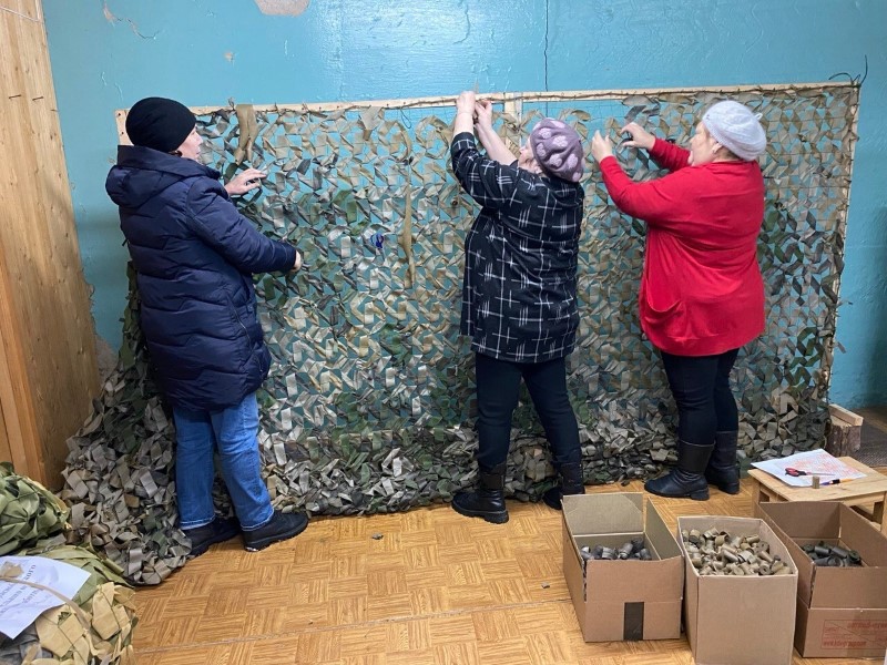В п. Шеманиха социальные работники ГБУ "КЦСОН Краснобаковского муниципального округа" изготовили сорок четвертую по счету маскировочную сеть для СВО