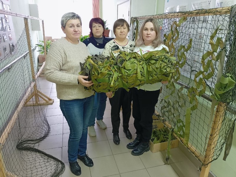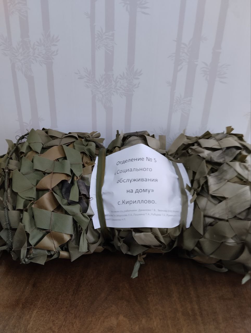 В с. Кириллово социальные работники ГБУ "КЦСОН Краснобаковского муниципального округа" изготовили одиннадцатую маскировочную сеть для СВО